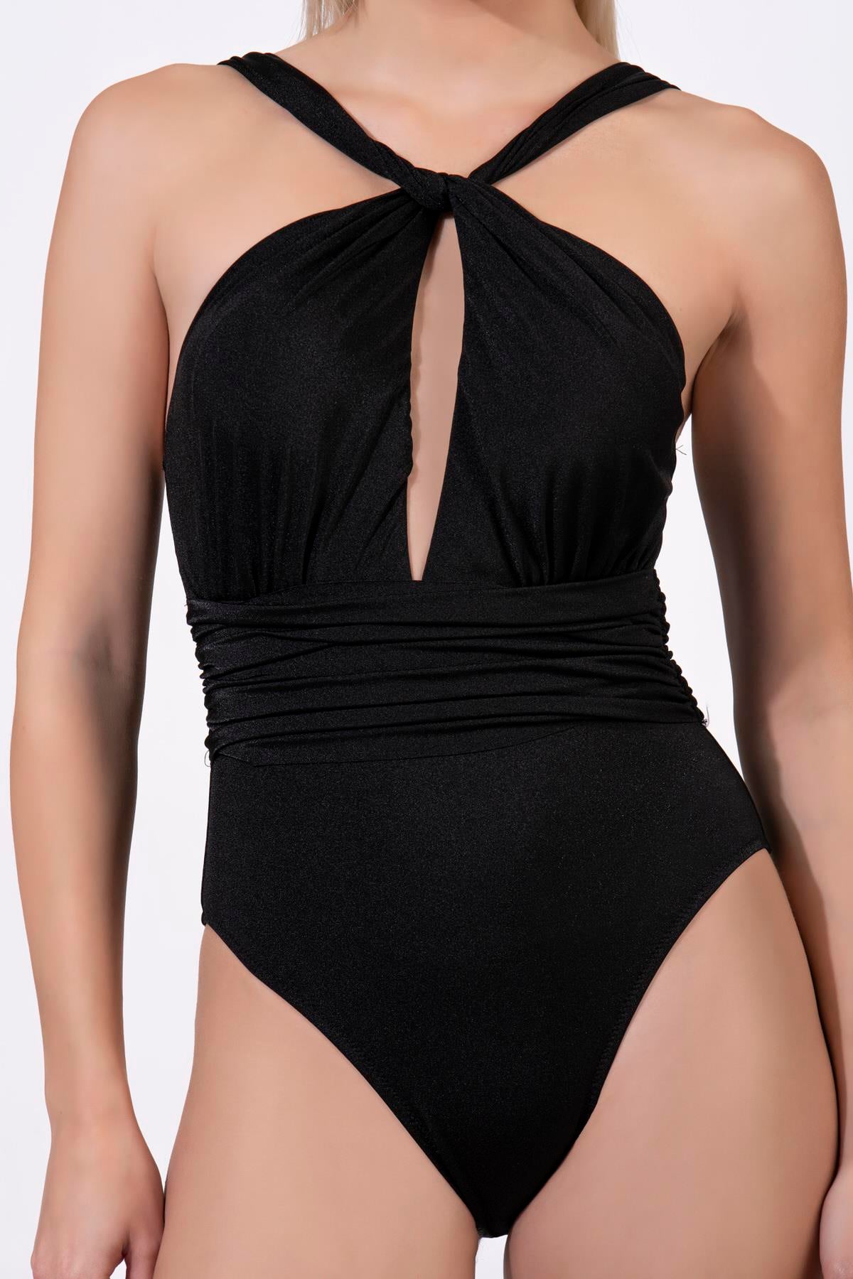 Endeep Kadın Büzgü Detaylı Siyah Mayo (EP22242)