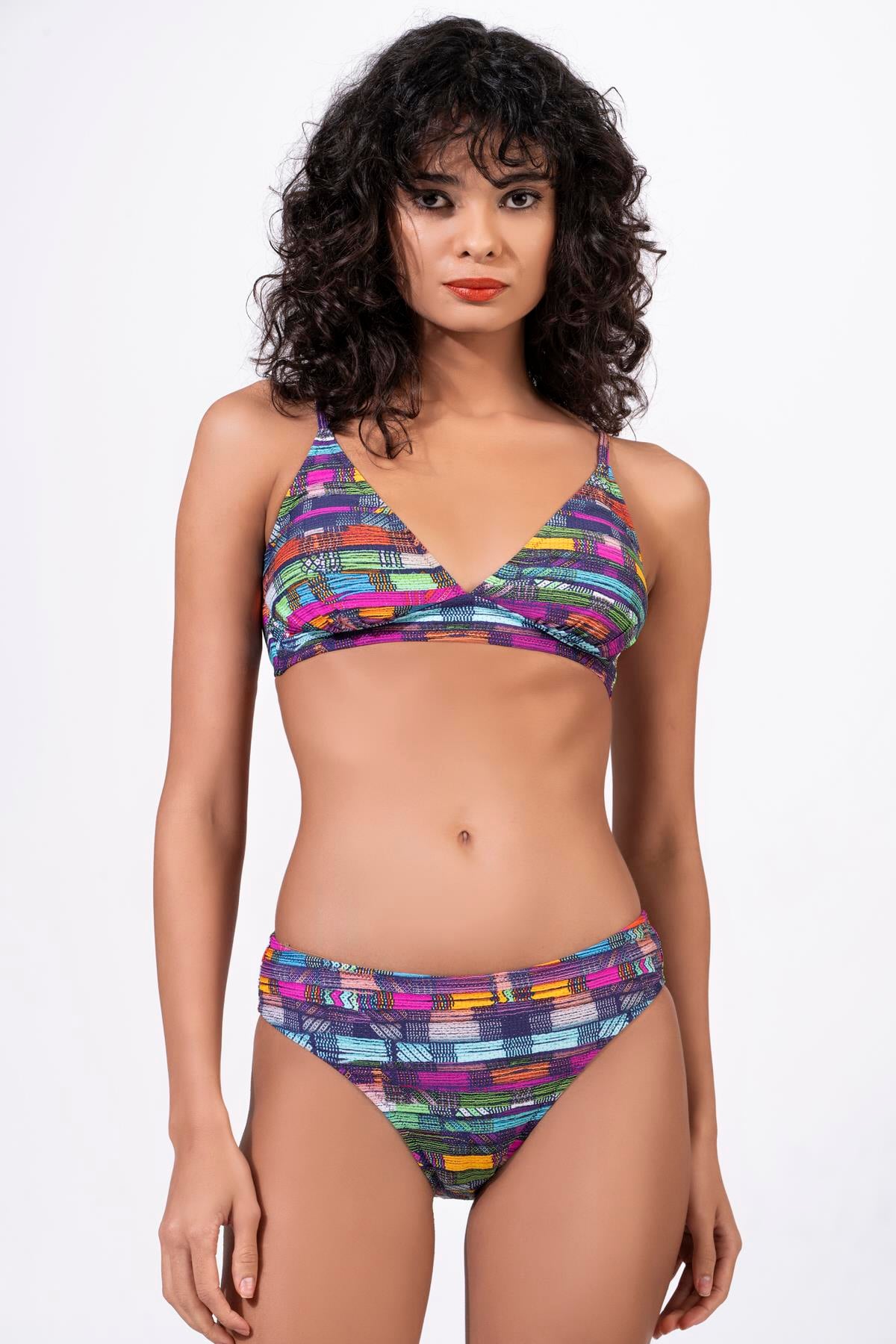 Endeep Kadın Çizgi Desenli Özel Lurex Kumaşlı Toparlayıcı Bikini Takımı (EP22532)