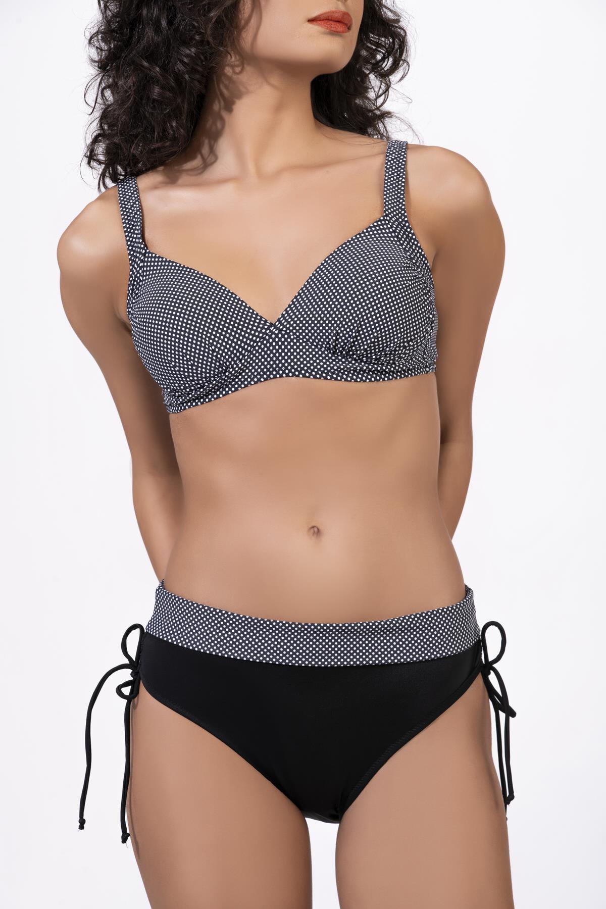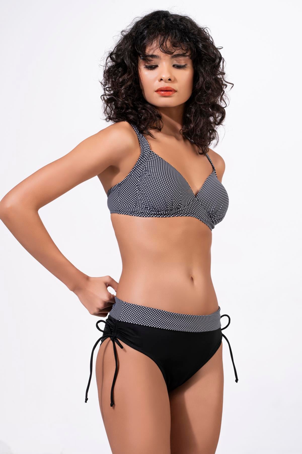 Endeep Kadın Puantiye Desenli Bağcık Detaylı Toparlayıcı Siyah Bikini Takımı (EP22476)