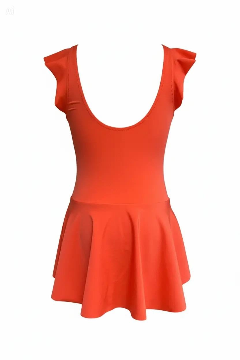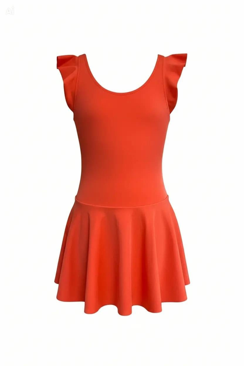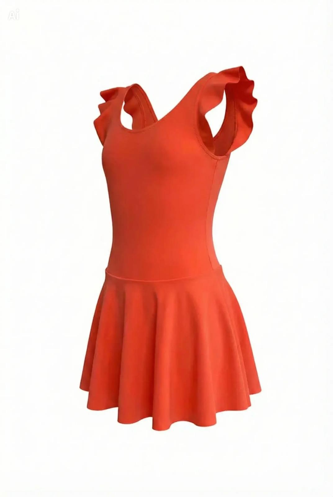 Endeep Kız Çocuk Fırfır Detaylı Turuncu Etekli Elbise Mayo (EP218422)