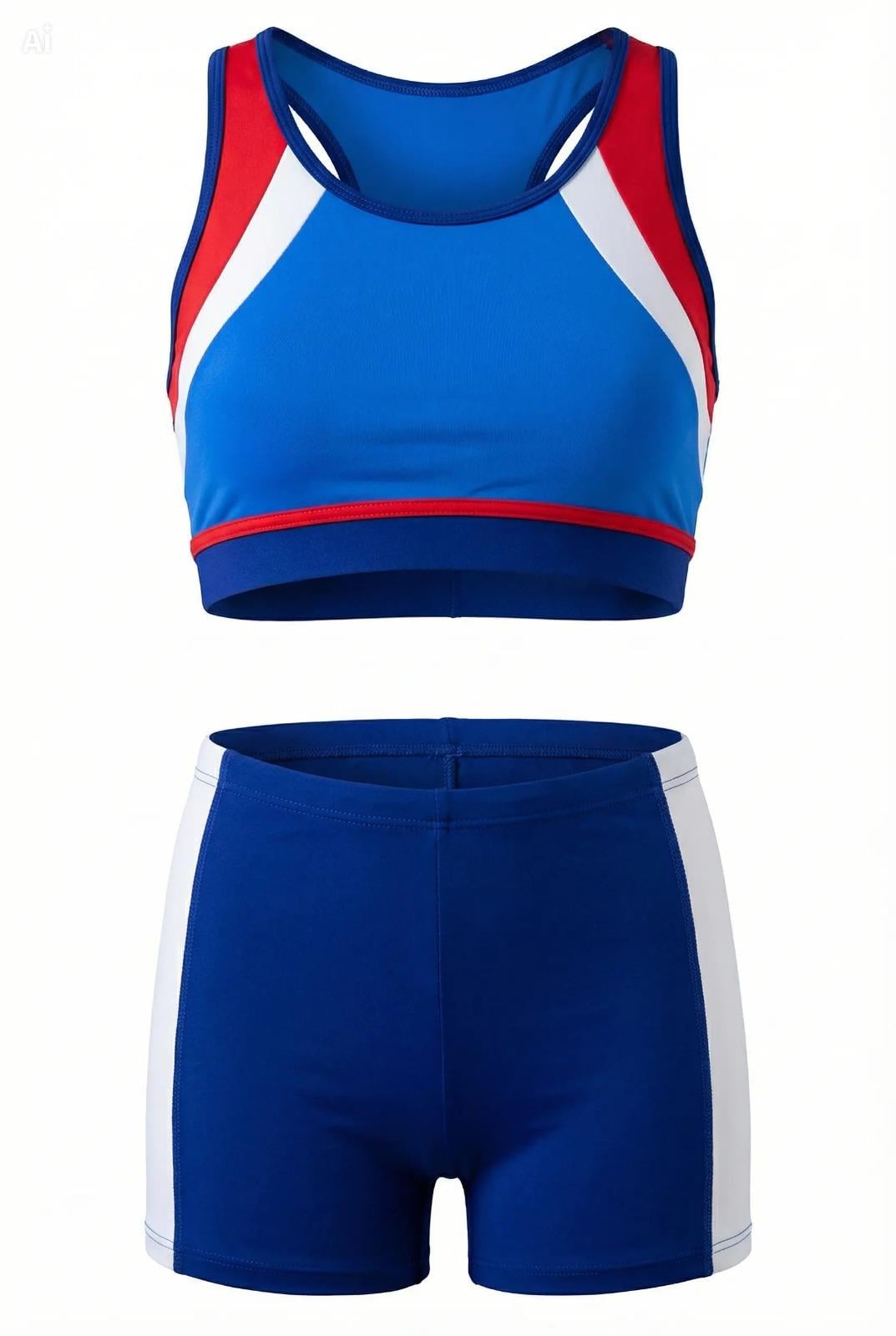 Endeep Kız Çocuk Mavi-Beyaz Bustiyer Taytlı İki Parça Yüzücü Mayo Bikini Takımı (EP218425)