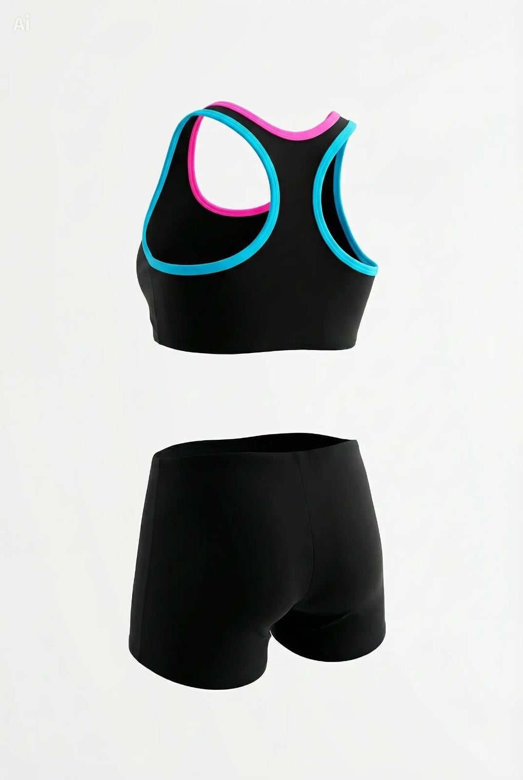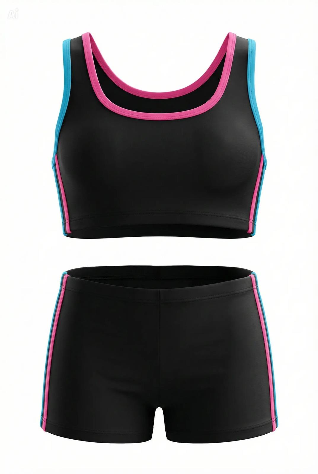 Endeep Kız Çocuk Siyah-Pembe Bustiyer Şortlu Yüzücü Mayo Bikini Takımı (EP218426)